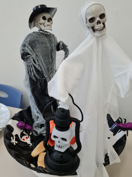 (während sie Totenköpfe in die Sägespäne malen)?